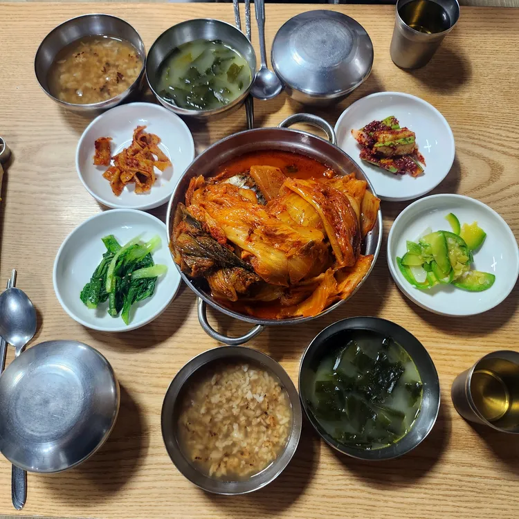 김치, 고등어조림 등 기본적인 요리를 빠르게 세팅해보세요. 이 유명한 집은 앞접시를 제공하지 않기 때문에 밥그릇 뚜껑에 담아서 드시면 됩니다. 반찬은 리필 가능해요! 일반 생수 대신 보리차가 제공되며, 주인이 매일 직접 끓여준다고 한다. 왠지 맛있습니다.