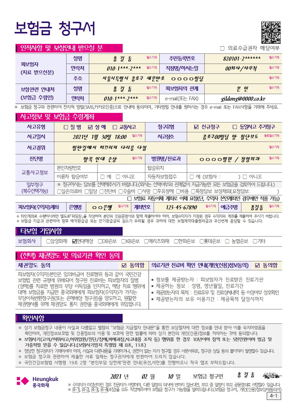 메리츠화재에서 발생한 의료비의 경우 입원 및 외래진료에 따라 보장내용이 상이합니다. 팁으로, 진단서보다는 진단서나 입원 및 퇴원 증명서를 받으십시오. 외래진료 청구를 위해 아래 4가지 서류를 준비했습니다.1. 청구서 2. 개인정보 동의서 3. 진단서 4. 영수증 1, 2는 메리츠화재 홈페이지에 접속하여 다운로드 받을 수 있습니다. 보험 청구 방법