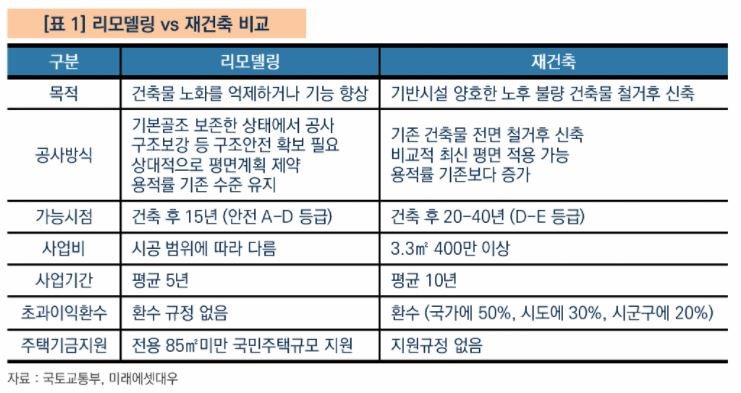 ■ 재건축과 리모델링의 차이점 요약● 재건축과 리모델링의 차이점 요약
