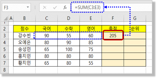 04점수가 높을수록 순위가 높아지도록 순서를 (0)으로 입력하고 괄호를 닫은 후 (Enter) 키를 누릅니다. 아래와 같이 순위가 나오나요?